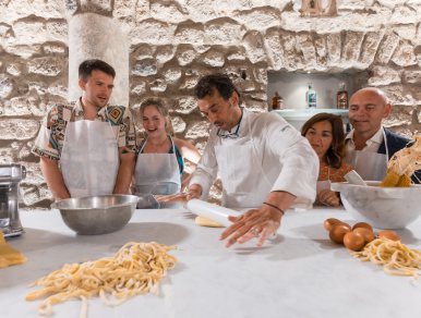 In addition to cooking classes on typical dishes, pizza, and bread-making, you can explore traditional food preparation methods in an 18th-century location in the historical center of Sorrento.