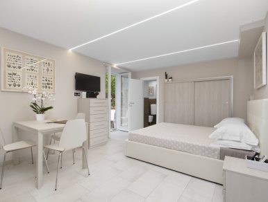 Se si preferisce maggiore indipendenza durante il proprio soggiorno, il nostro monolocale Armida con vista sul giardino è la scelta ideale.
